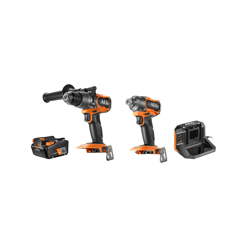 Get the heavy-duty 18V Brushless 2-Piece Combo Kit from AEG with its 18V Brushless Hammer Drill and 18V 3-speed Impact Driver. This great-value duo is ideal for building a new tool kit or upgrading your existing one and includes an 18V 4.0Ah Battery and 18V Compact Charger.