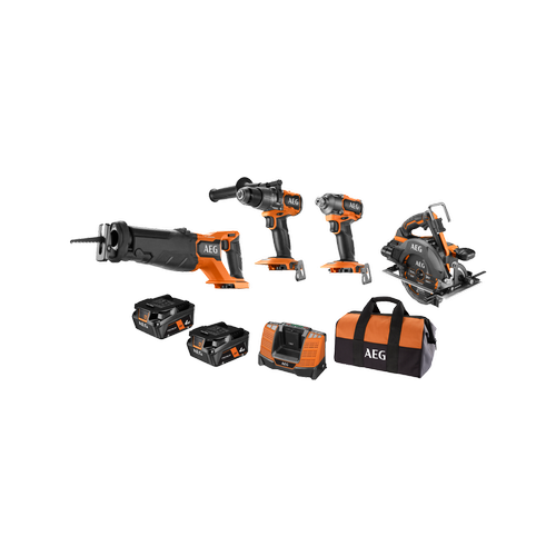 Powertool AEG 2x4Ah 18V FORCE 4 Piece Brushless Combo Kit - 2x4.0aH'