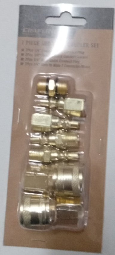 The 7 piece nitto style fitting set includes a male plug, 2 female plugs, male coupler and female coupler to suit all your basic air tool connections.