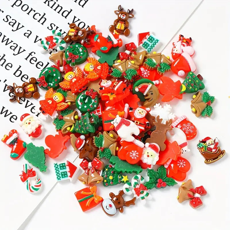 100pcs Christmas Resin Charms, ABS Flatback Embellishments for DIY Crafts, Festive Assorted Shapes for Scrapbooking Accessories and Jewelry Making
