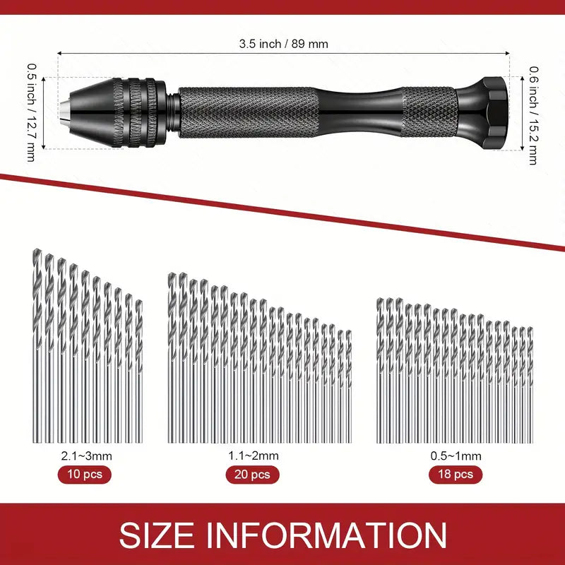 Sufficient and Comprehensive Hand Drill Tools: you will get 49 pieces of manual hand drills, including 1 piece of big pin vise, 48 pieces of small twist drill bits, available in various diameters and lengths, and 10 pieces of tungsten carbide micro drill bits, a total of 59 pieces, adequate and various to satisfy your crafting needs in daily life.