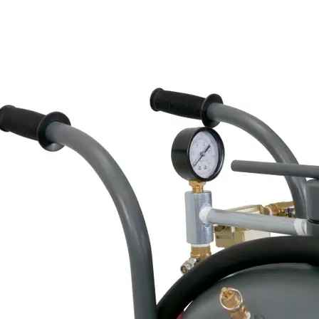 - Equipped with a nozzle and shut-off valve, pressure gauge, ceramic nozzle, filling funnel, water trap and canvas blasting hood
