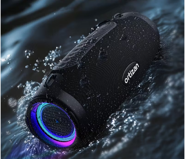 Ortizan M8 Portable Speaker | Wireless, Dustproof, 12H Playtime, Built-in Mic, Quick Charge, RGB Lights & Dual Drivers For Shower, Outdoor, Sport, Party, Home