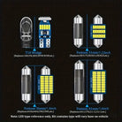 Package include: Map Light (2 pieces) (No need to use skylight models) Dome Light (1 piece) (No need to use for skylight models) Vanity Mirror Light (2 pieces) Glove Box Light (1 pieces) Trunk Light (1 piece) License Plate Light (2 pieces) Spare Light (2 pieces) 1 x Installation tool.
