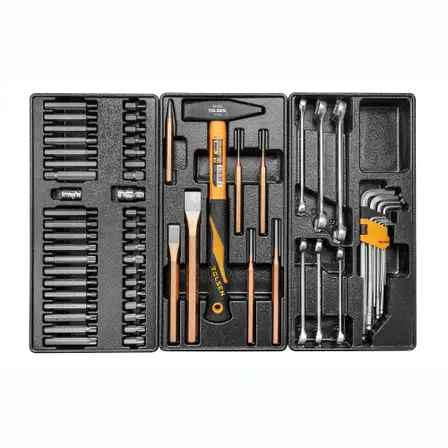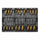 Keep your tools sorted, secure, and right where you need them at all times with this 7-Drawer Roller Cabinet Complete with 189pc Tools. Specifically designed for garages, workshops, and serious professional use, this handy unit features a total of seven spacious drawers, each containing a generous selection of essential tools and equipment. From pliers and hacksaw blades to screwdrivers and wrenchs, this cabinet has it all. The smooth-rolling caster wheels provide easy mobility around the workplace, while the its compact footprint allows you to make the most of smaller environments with limited floor space. Supplied with 189 carefully selected tools (listed below), this tool storage cabinet 7-drawers has everything you need for a fully equipped and organised workspace - all in one robust, mobile unit.