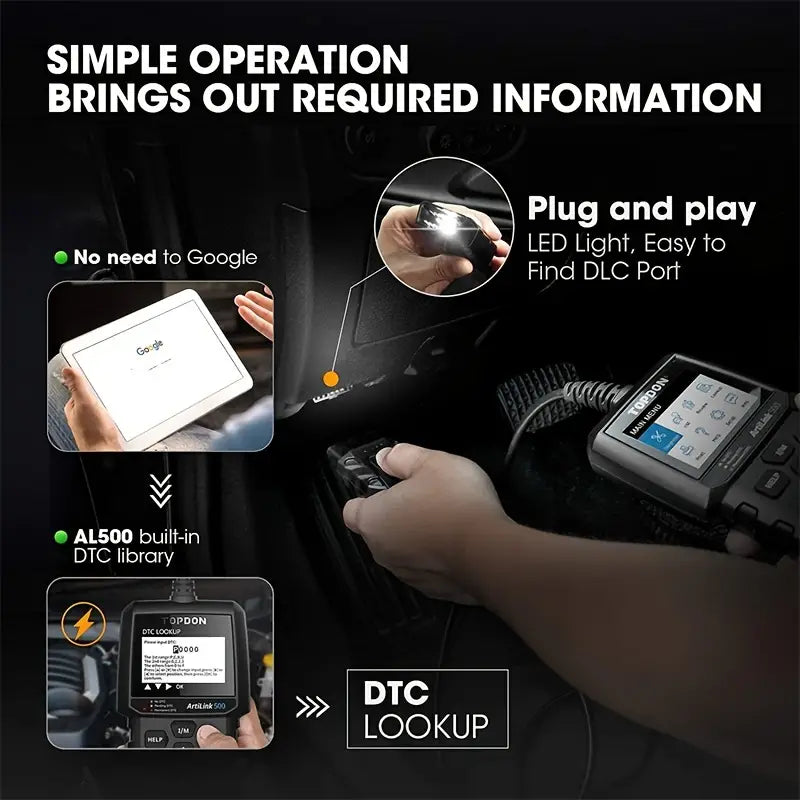 Efficient Car Diagnostics: Quickly and accurately diagnose your car's issues with the TOPDON AL500 OBD2 Scanner.