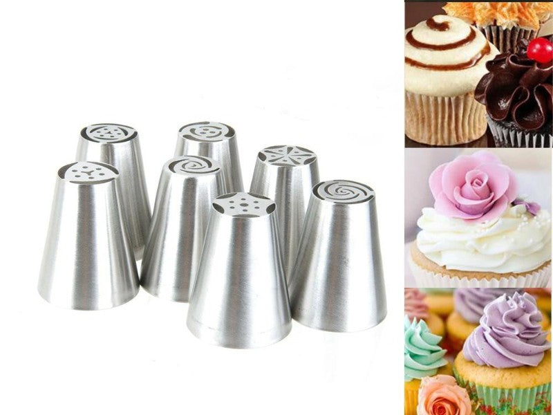 Baking 7PCS Stainless Steel Cake Decorating Icing Piping Nozzles Set