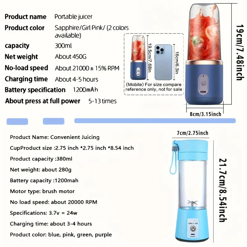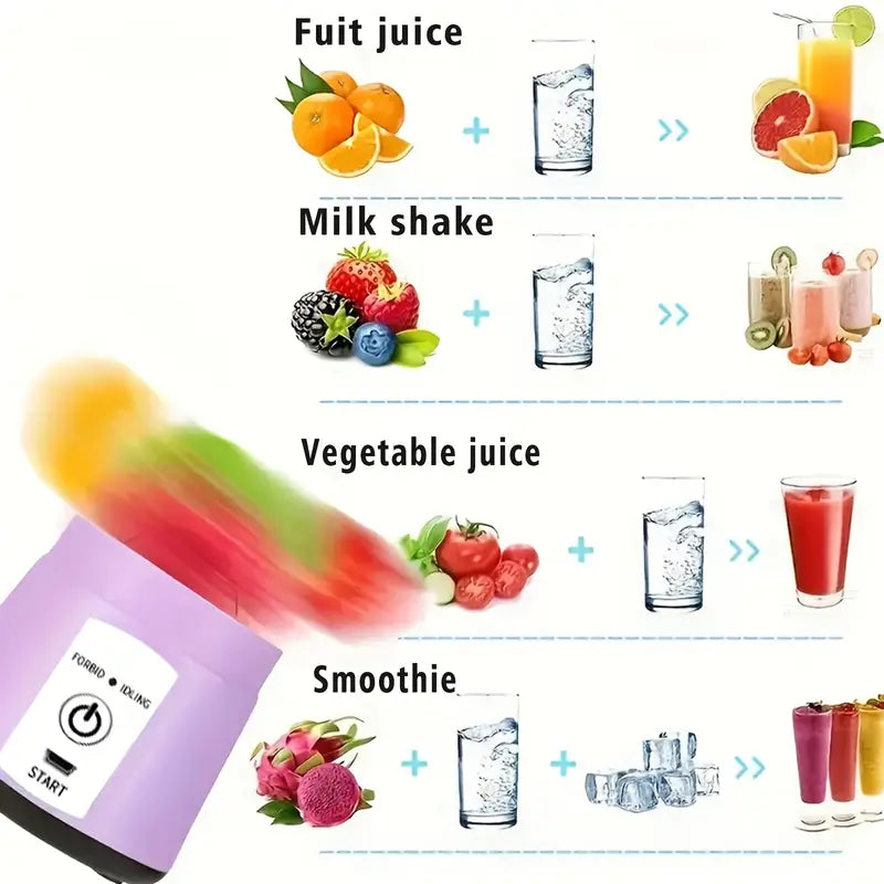 Rechargeable USB Personal Blender: 380 ~400ml Portable 6-Blade Juicer Cup For Shakes, Smoothies And Fruits - Great For Travel! for hotels, restaurant, stalls, food trucks