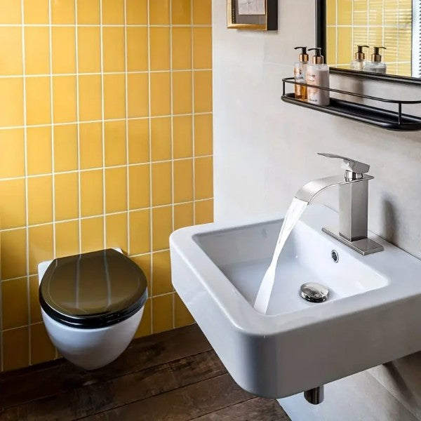 Upgrade Your Bathroom with a Stylish Black Plated Waterfall Basin Faucet!