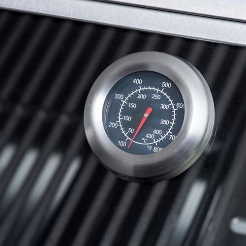 The Jumbuck Astro 4 Burner Built in BBQ features 430 grade stainless steel construction, a huge glass viewing window in the roasting hood, front removable grease tray and cast iron hotplate and cooking grill.