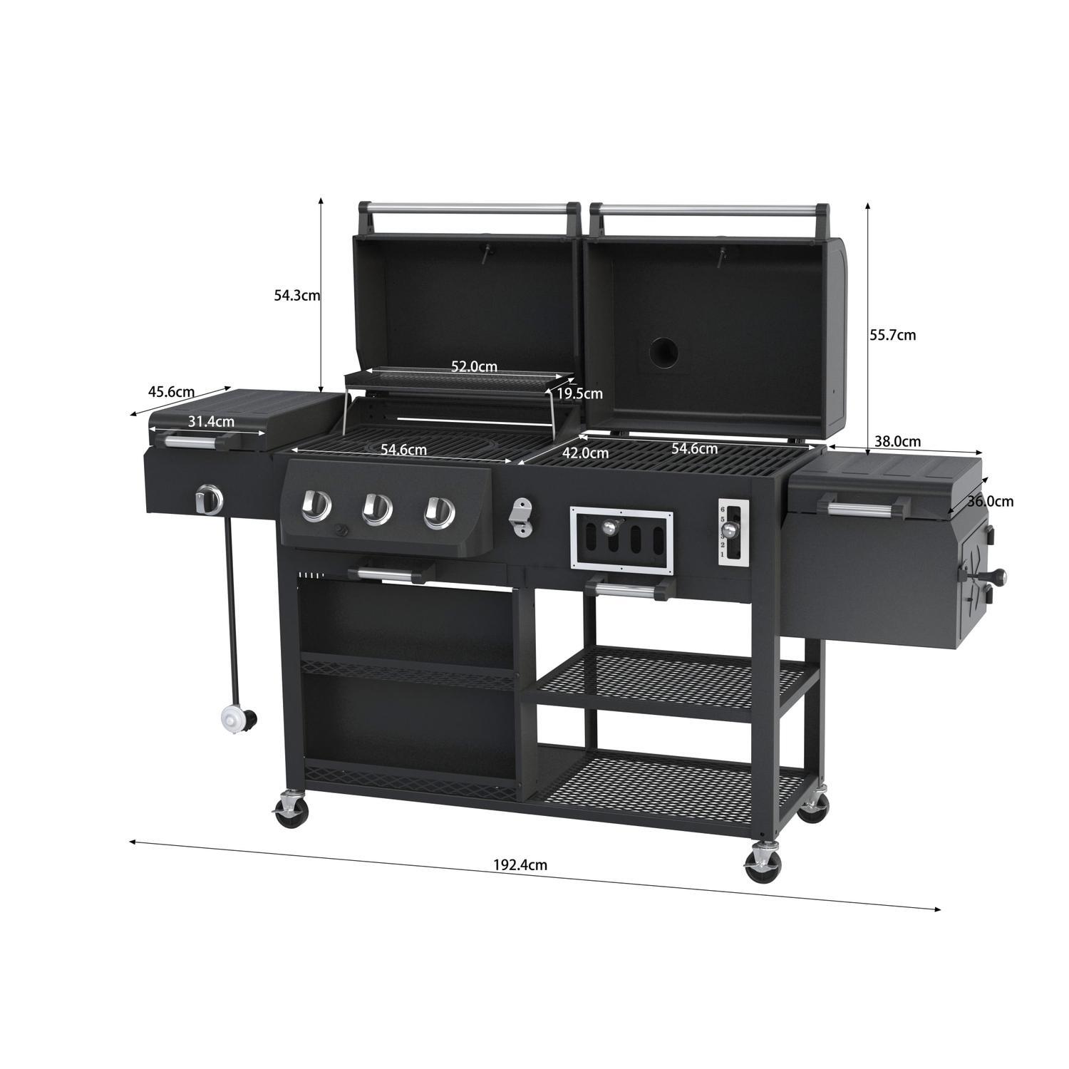 The St Louis all-in-one BBQ & Smoker includes a three burner gas BBQ with infrared side burner and a charcoal BBQ with offset smoker box. All the flexibility you need to create the most ambitious barbecue right in your backyard. This unit is made from powder coated steel with a heavy duty 92kg frame and lockable wheels. Elevate your outdoor cooking to levels of mastery with the St Louis BBQ & Smoker.