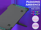 The wide surface is large enough to accommodate all your gaming gear. Built-in colorful RGB lighting effects increase the game atmosphere. It also configures an earphone hook to keep your desktop tidy.