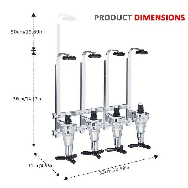 NEW! 4 Bottle Wall Mounted Spirit Drink Dispenser Bar Shot Measurer Optics