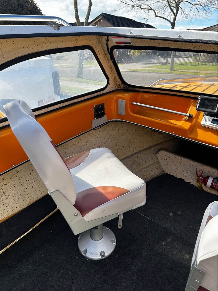 Good little boat, 90 HP Mercury, Rocket Launcher, 2 Fuel tanks, Low range fish finder, Bimini, Anchor, Wof still valid.