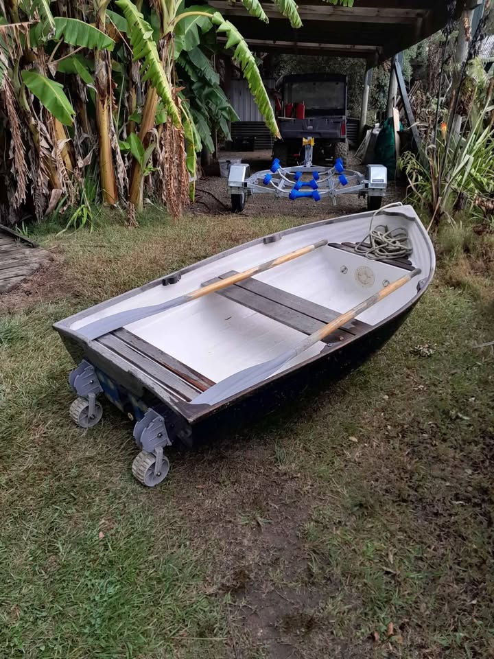 I have a "Laver marine, Teddington" dinghy for sale. This has been an excellent rowing dinghy. It is built very strong out of fibreglass with teak trim. Has lifting eyes fitted inside and beach wheels at the back. Includes oars. 2.2m length and 1.2m width approximately.