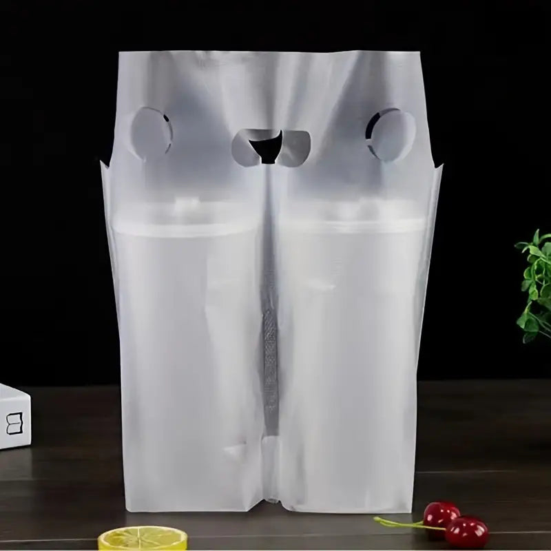 Café' 100pcs 700ml Frosted Clear Handle Takeaway Bag For Coffee