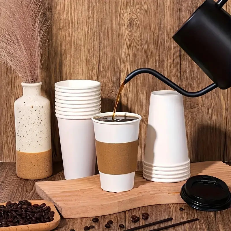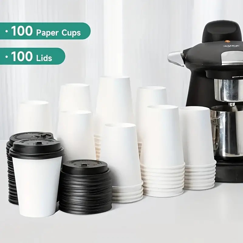 100pcs Disposable Coffee Cup With Lid And Corrugated Design,