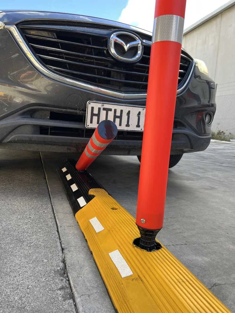 Our highly durable Lane Delineators can come with the option of either a flexible posts, or flexible boards for an added visual and semi-physical barrier that ensures additional safety and driver awareness. Rubber Lane Delineators are highly effective at creating Vehicle Lane Organisation, especially in busy city streets, car parks and cycle lanes or pedestrian walkways. Installed in rows, these can be installed without a post or board, to allow vehicles to still travel over the Lane Divider e.g. for driveways or entrances/exits.