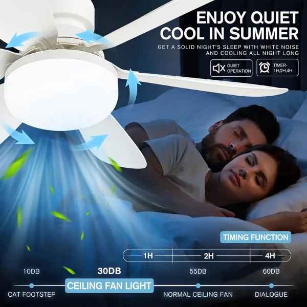 Fans Quiet Ceiling Fan with Light, Remote Control