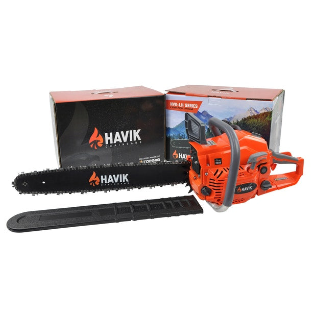 The largest and most powerful of the Havik chainsaw models we offer, this 61.5cc model is equipped to do well not only in meeting all your home woodcutting needs, but in wider commercial application too.