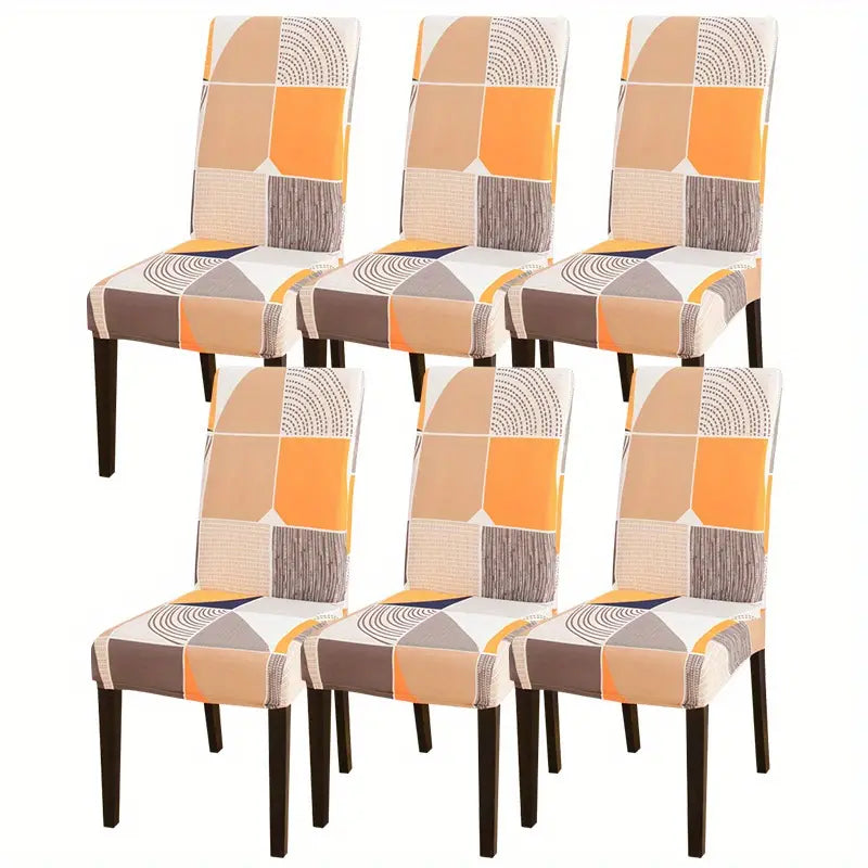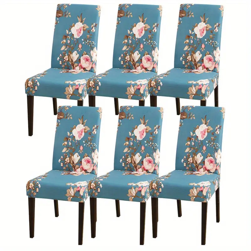 4pcs/6pcs Printed Stretch Dining Chair Slipcover, Detachable Chair Protector Suitable For Living Room Hotel Dining Room Kitchen Home Decoration