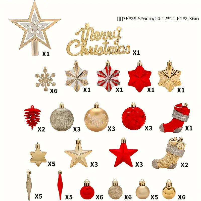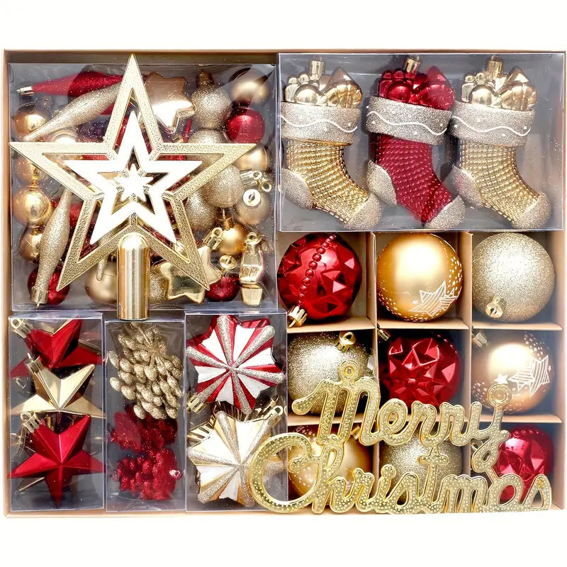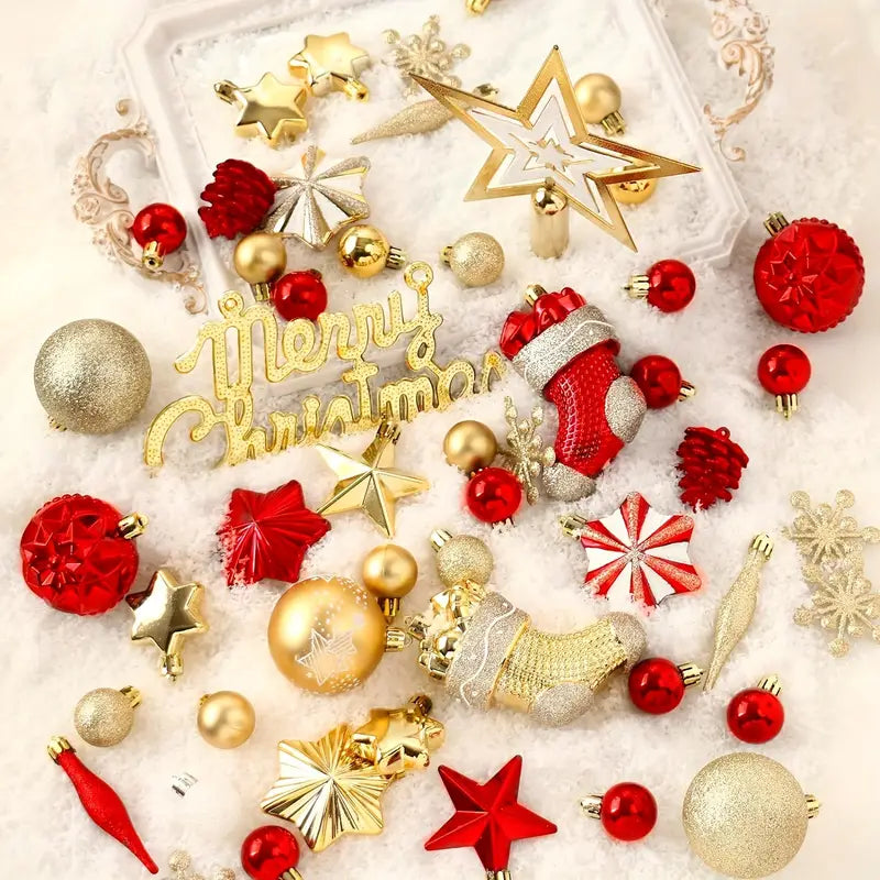 70pcs Shatterproof Red & Golden Christmas Tree Ornament Set