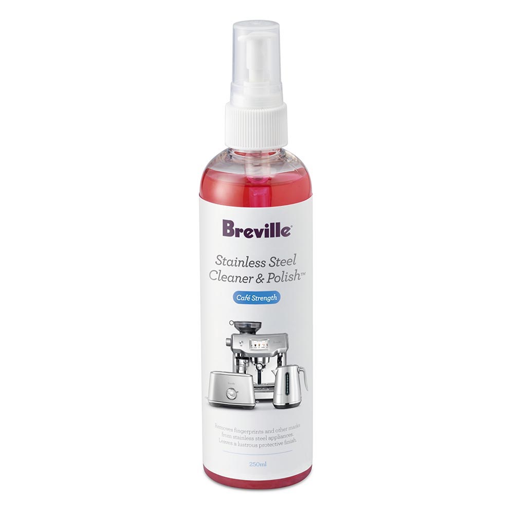 Breville's stainless steel cleaner and polish removes finger marks and other marks from stainless steel appliances. Leaves a lustrous protective finish. Suitable for all Stainless Steel surfaces.