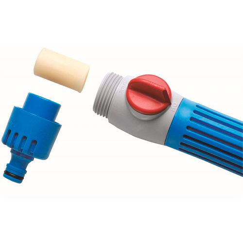 Designed for washing vehicles and boats. This water brush is robust and durable and features a reliable water control valve with soap chamber (two Soap Sticks included) and connects to all common hoses fittings. Extra soft non scratch bristles are ideal for cleaning delicate paint surfaces.