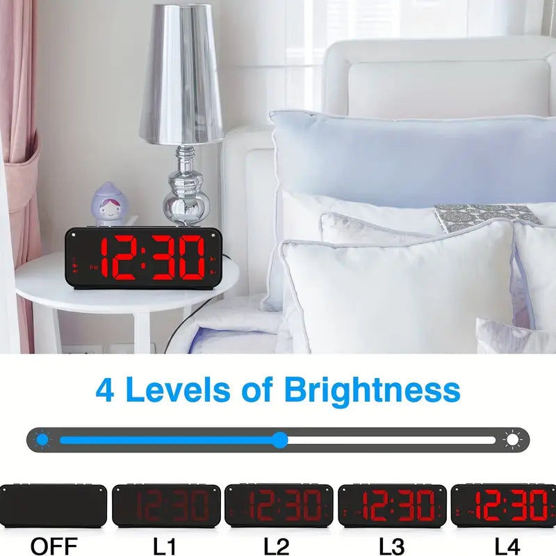 5-level brightness dimmer allows you to adjust the clock to your preferred level of brightness.