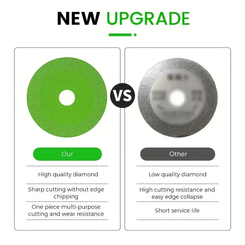 The diamond cutting blade is resistant to high temperature, which can reduce vibration and cut straighter and faster. It is sharp and will not collapse. It is multi-purpose, with small incision and is resistant to cutting and wear.