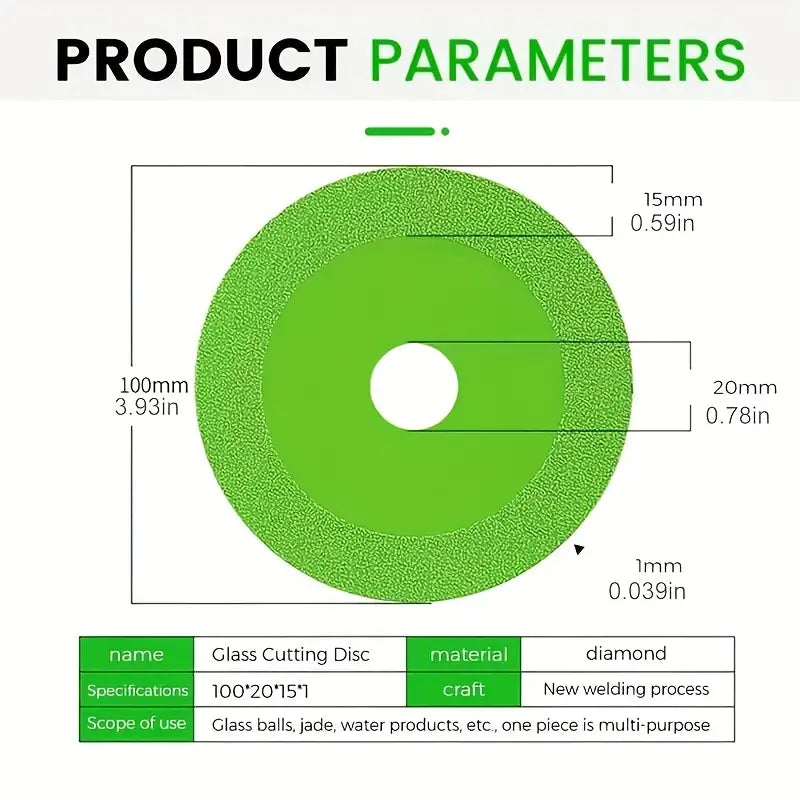 Scope of application: For smooth cutting, chamfering and grinding of glass, jade, crystal, wine bottle, ceramics, ceramic tiles and other materials. Chip free cutting.