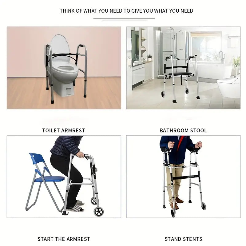 Adjustable Height Aluminum Alloy Walking Aid With Wheels And Seat,