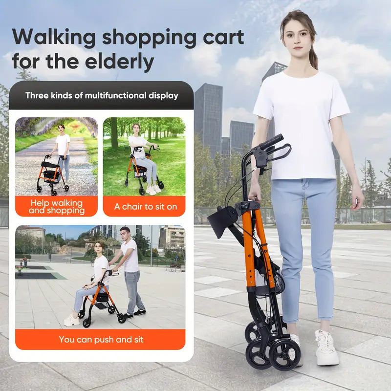 Four-Wheel Rolling Walking Aid with Shopping Cart