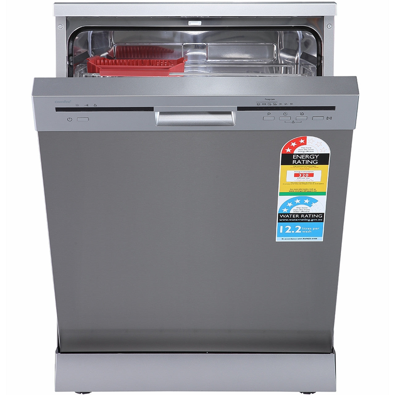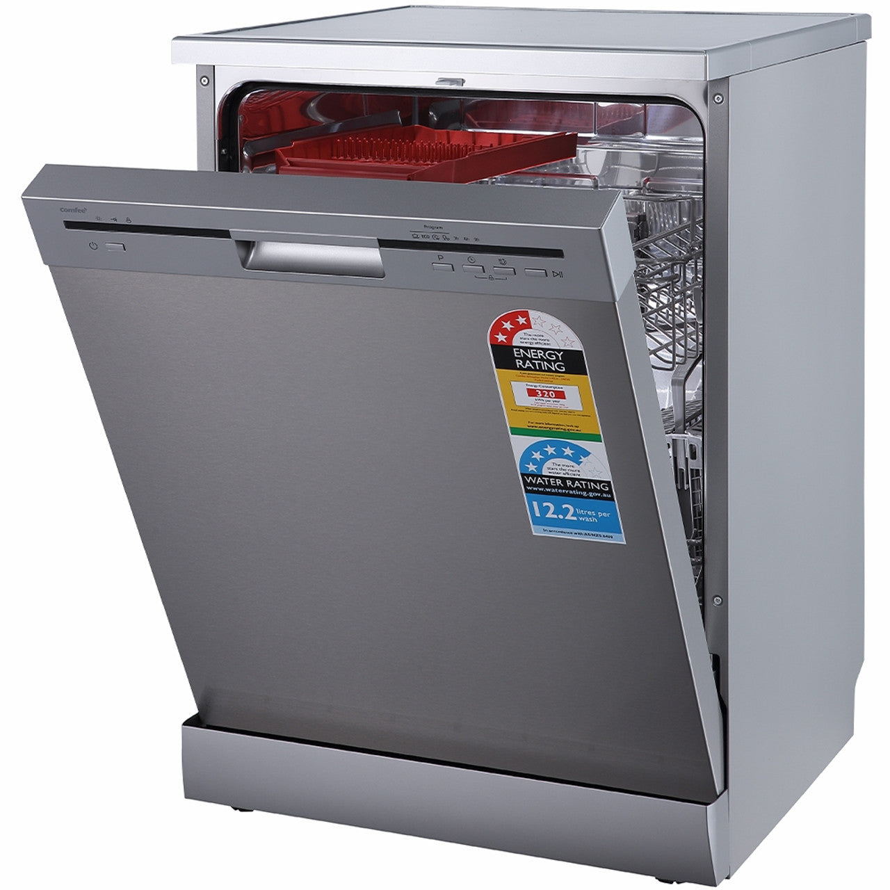 This Moon freestanding dishwasher ticks all the right boxes. Stylish in stainless steel, environmentally astute, and extremely affordable. The water consumption is as low as 12L of water per load (Eco mode), achieving an impressive 4.5-star WELS rating and a 3-star energy rating.
