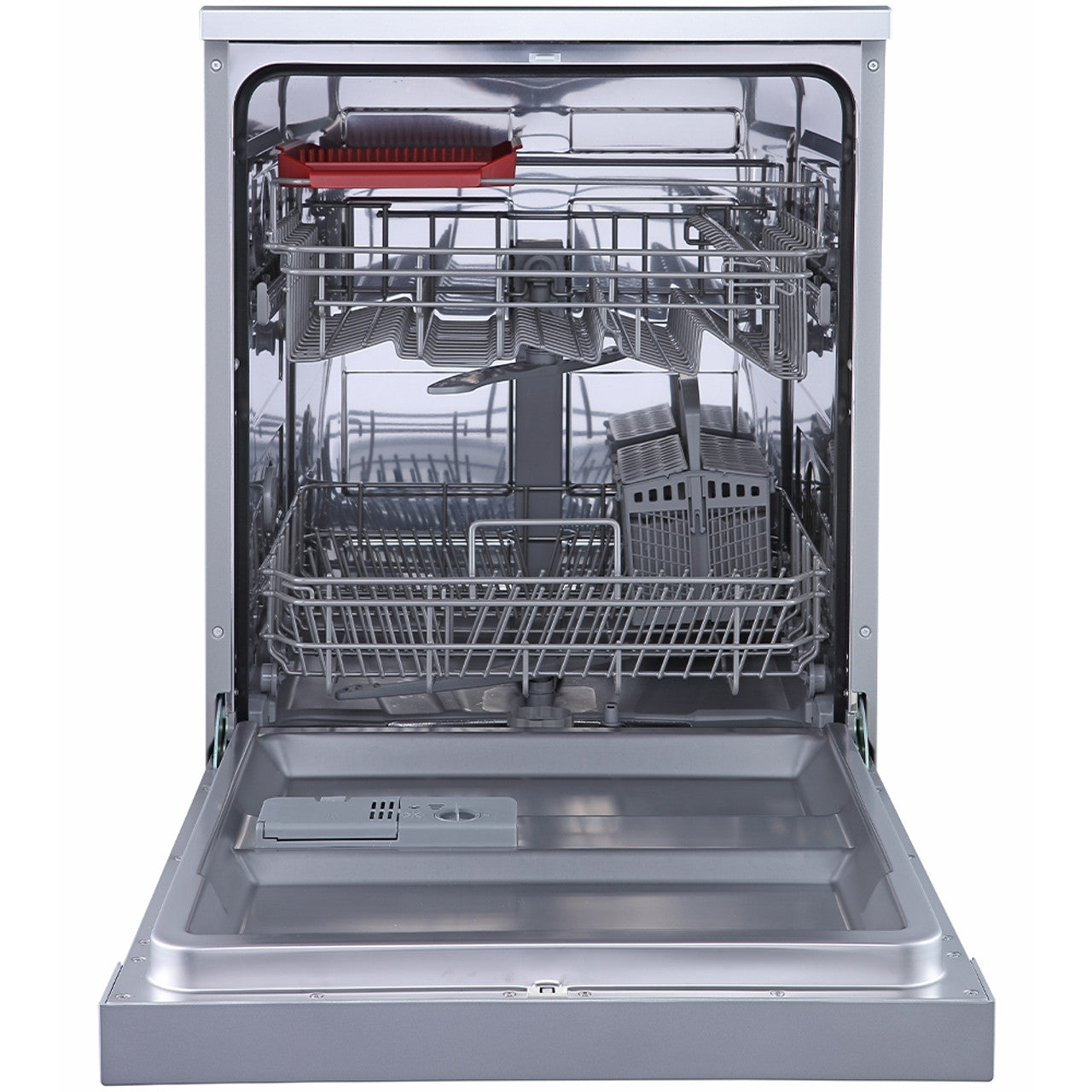 This easy-to-use dishwasher comes with 4 standard wash programs and an Extra Dry function. You can set a 3/6/9 hour delay timer and protect your young ones with the child lock. The interior has 2 sturdy baskets supporting up to 14 place settings of dishes. The upper basket also has a movable cutlery rack, and the lower basket holds the standard cutlery basket. Conveniently foldable cup holders and plate tines are there to ensure flexibility with your dishes.