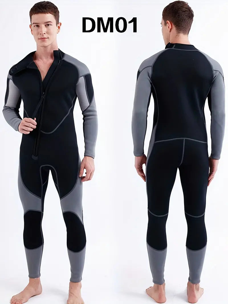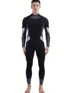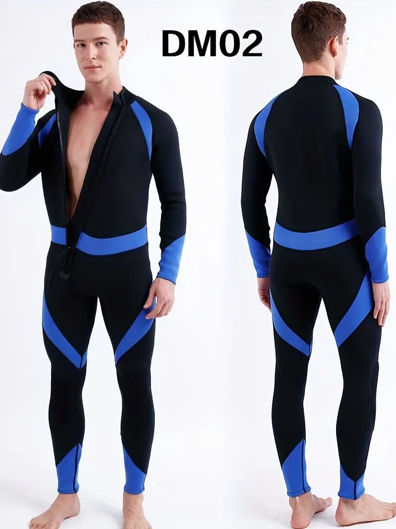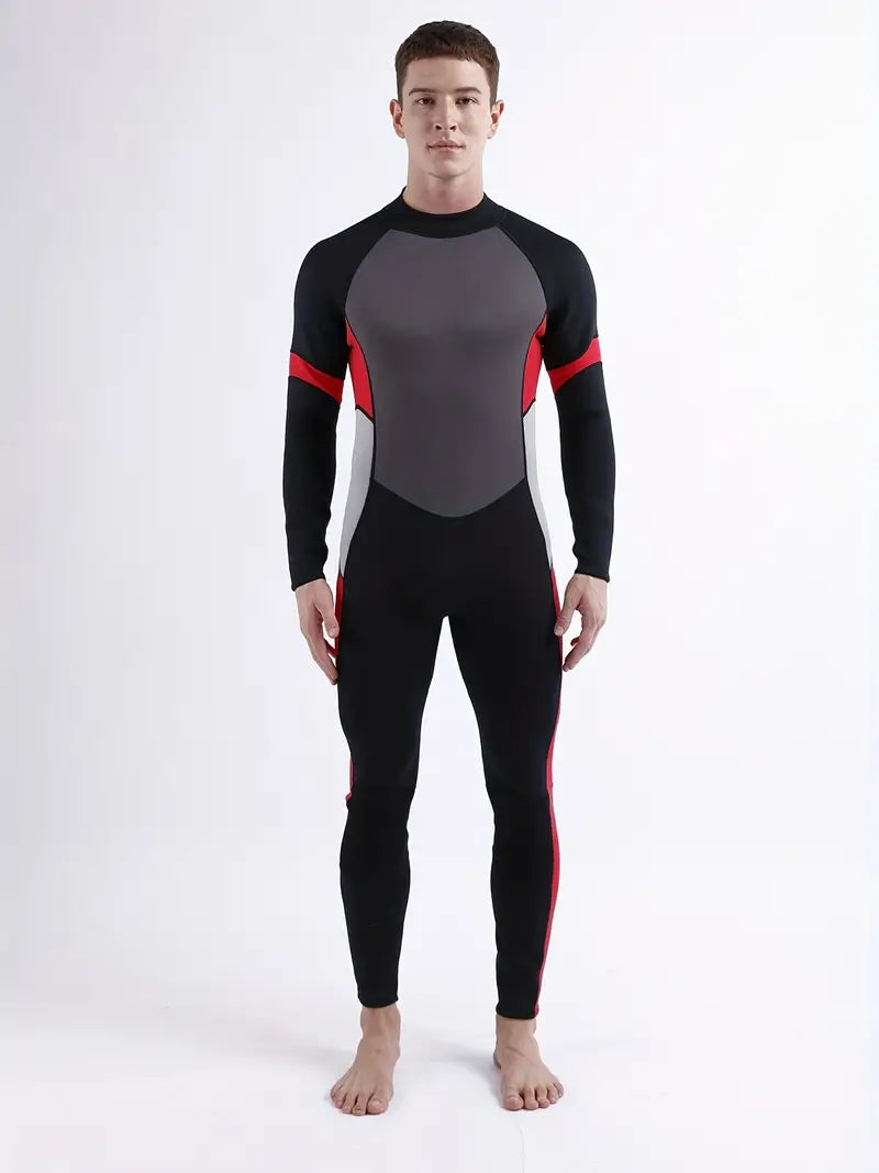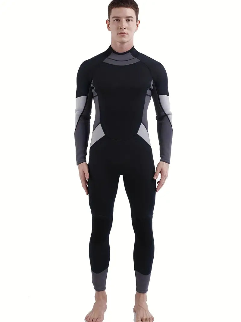 Men's Color Block Long-Sleeve Zip-Up Wetsuit - Perfect for Surfing & Keeping Warm!