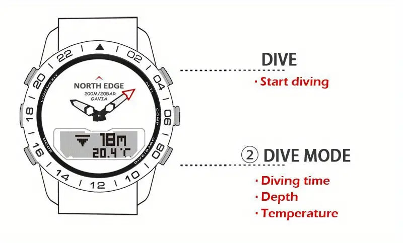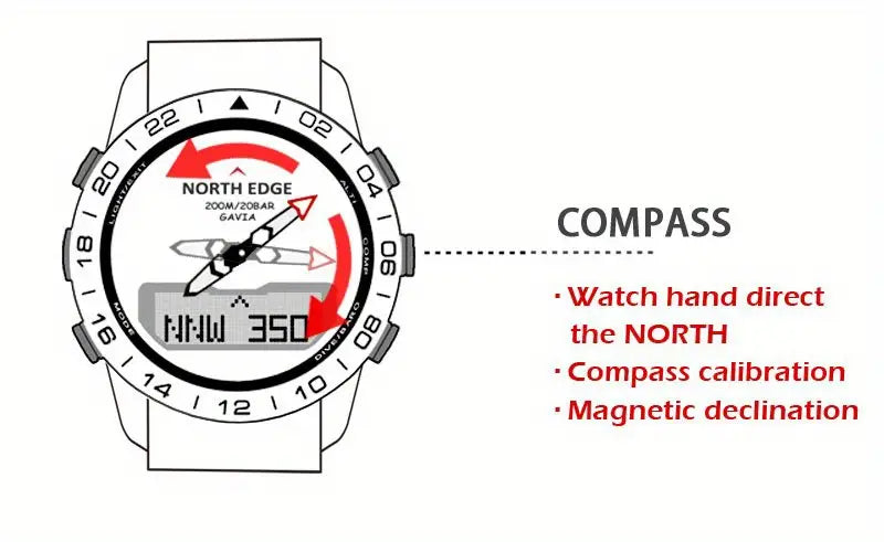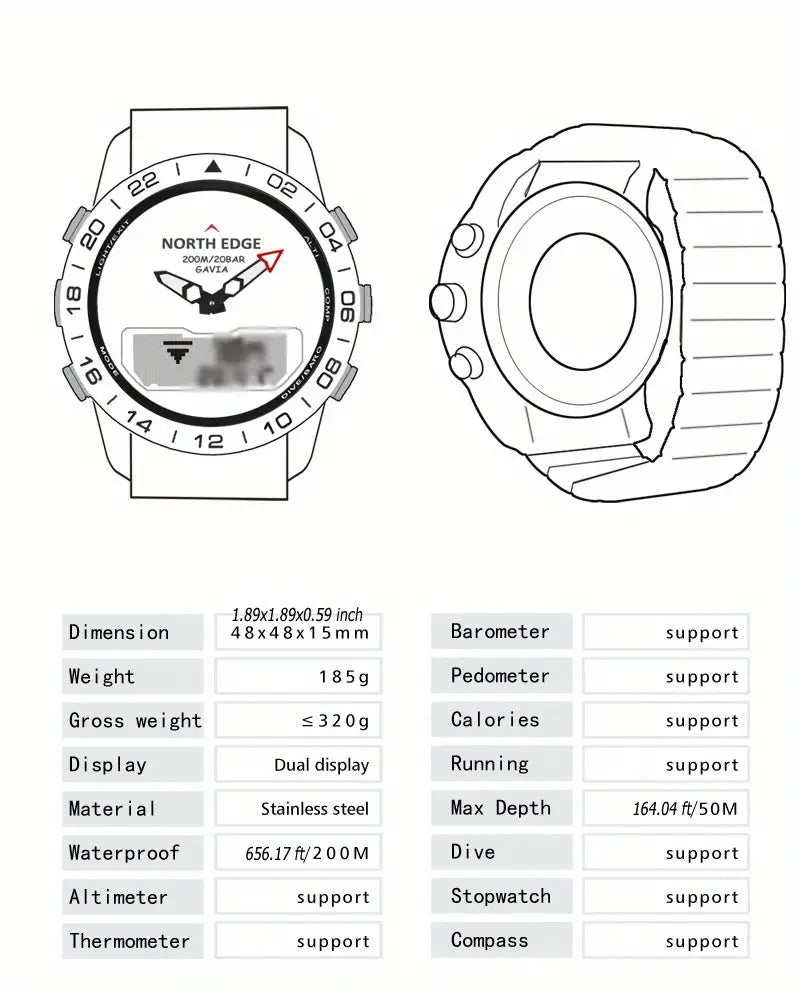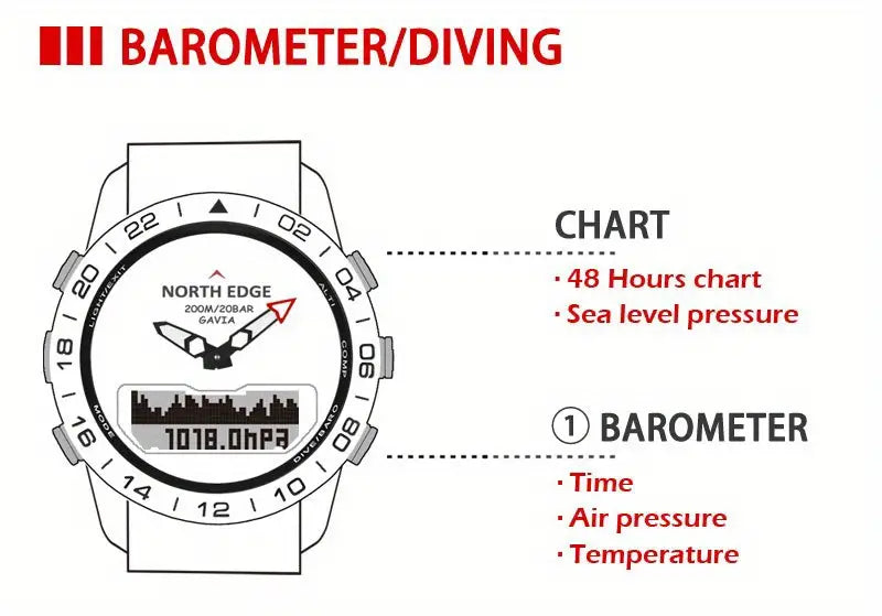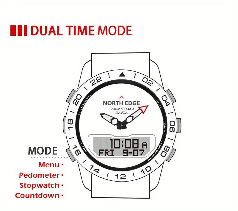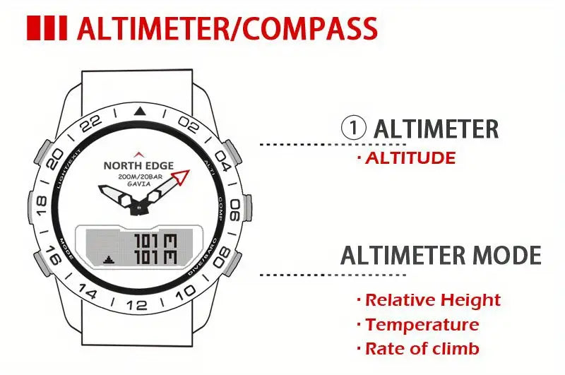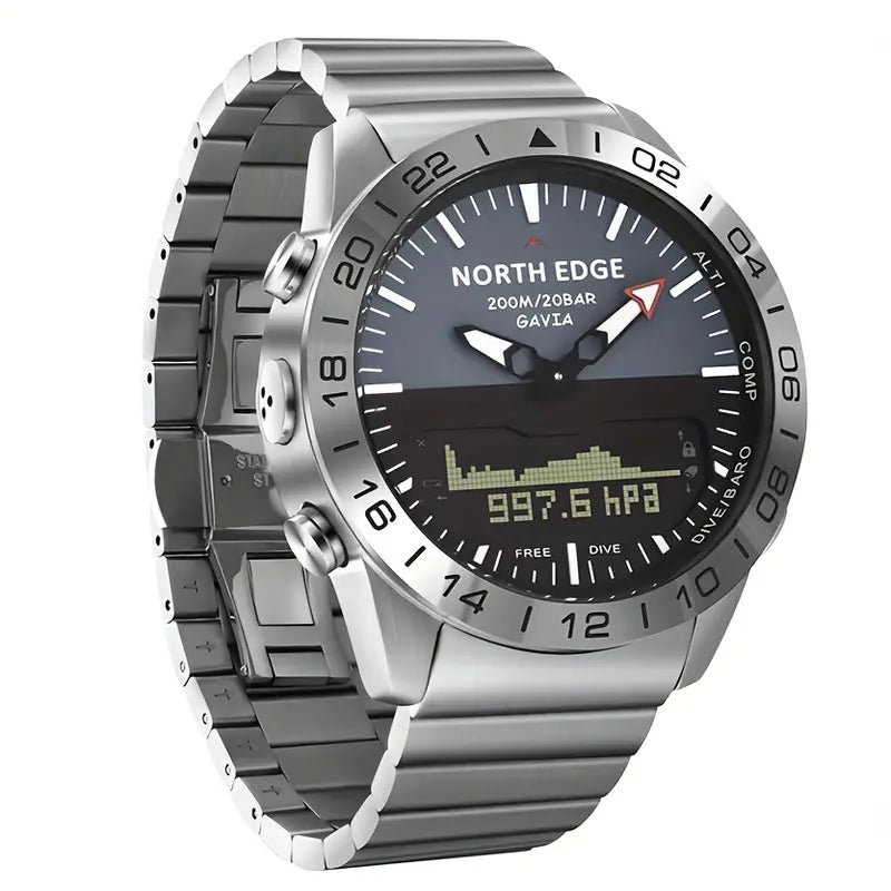Luxury 500 NORTH EDGE GAVIA 2 Men's Digital Watch - 200m/656ft Waterproof, Military-Grade Steel, Altimeter & Compass.