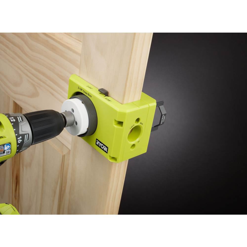 RYOBI introduces the Wood/Metal Door Lock Installation Kit. The RYOBI Wood/Metal Door Lock Installation Kit guides hole saws when installing locksets and deadbolts. This kit features a dual backset adjustment and auto-strike locator for improved accuracy with no additional measurements needed.