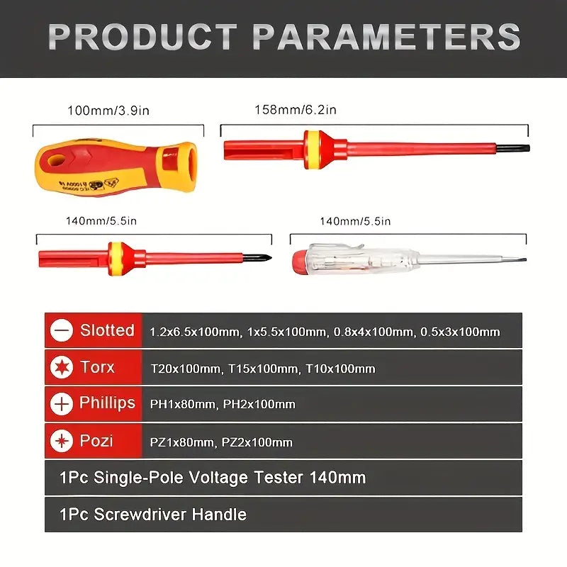 13Pcs VDE Insulated Screwdriver Set 1000V Slotted Phillips Screw Driver Bits Kit With Tester Pen Electricians Hand Tools.