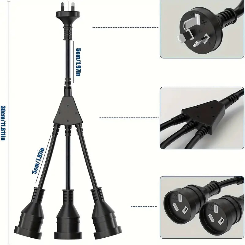 1pc 3-Way Splitter Power Extension Cord, 30cm,