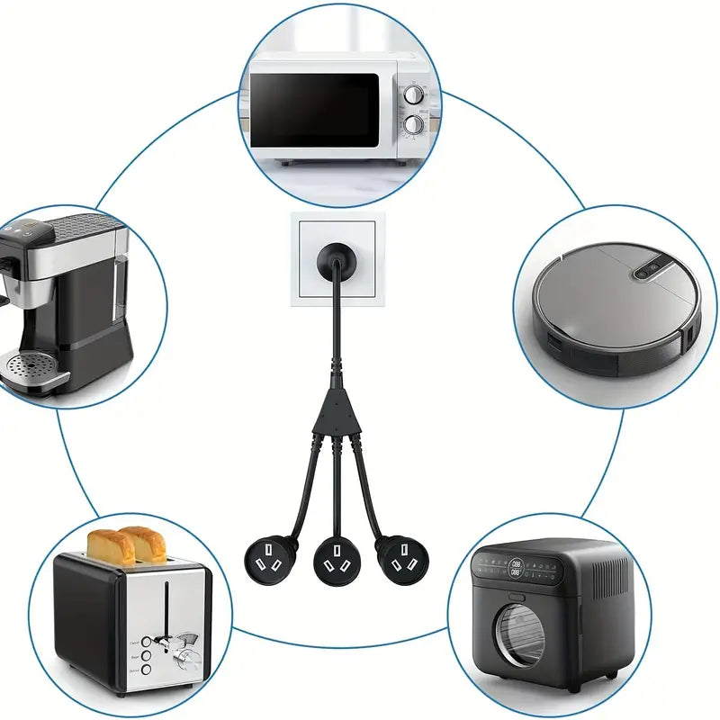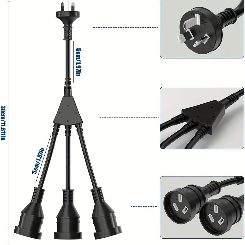 1pc 30cm Power Extension Lead Cord, Standard Australian, AU 3-Pin Plug, 3 Way Outlet Plug Adapter, Household Duty Extension Lead, 10A/2500W.