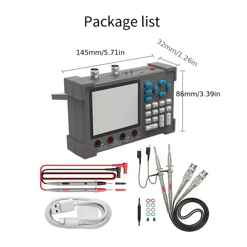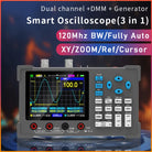 3in1 Oscilloscope Multimeter Signal Generator Machine 3.2inch IPS Display Oscope Meter Handheld Oscilloscope 120Mhz Bandwidth 250MSa/s Sampling Rate Dual Channel Oscillometer With Waveform Save And View Function For DIY And Electronic Test