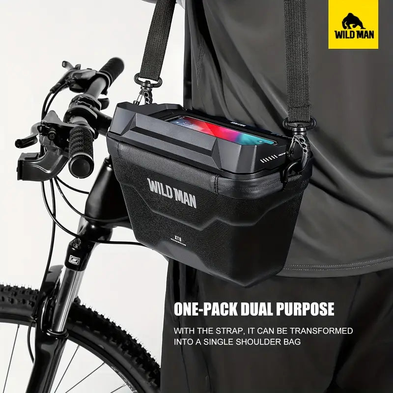 WILD MAN XT8 3L Large Capacity EVA Bicycle Bag, Hard Shell Waterproof Touch Screen Bag Folding Bike Front Bag For Electric Skateboard MTB Bicycle