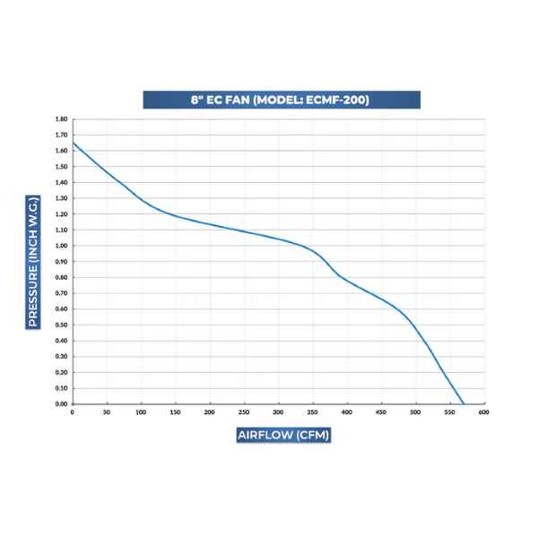 - ENERGY SAVINGS: Built with a cutting edge brushless EC motor and dual jet type impeller, our new 8" ECMF series fans deliver 569 Cubic Feet per Minute (CFM) of Airflow using only 74 Watts.