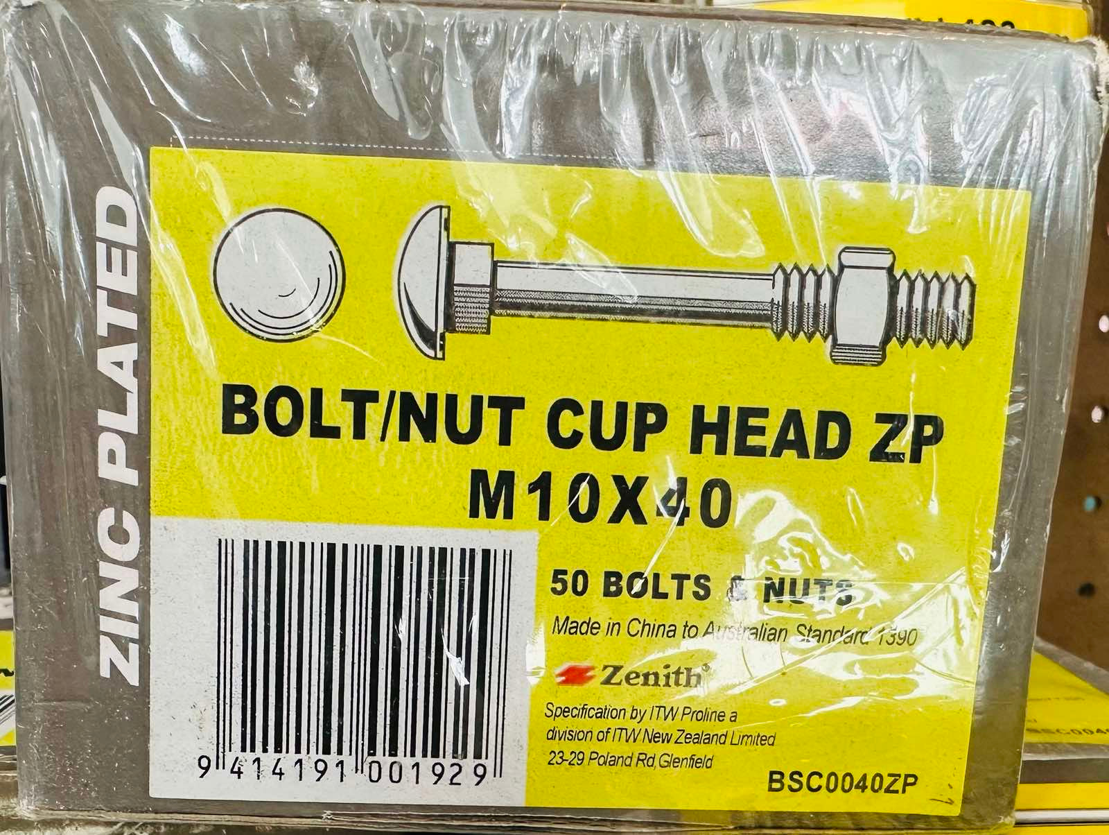 Fastenings - Bolt & Nut CUP HD ZP M10x40 - Bag /27