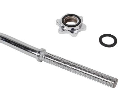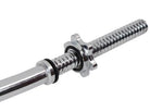 * This weightlifting bar features threaded spinlock collars that attach firmly to the ends to secure weight plates and prevent them from moving when you exercise
