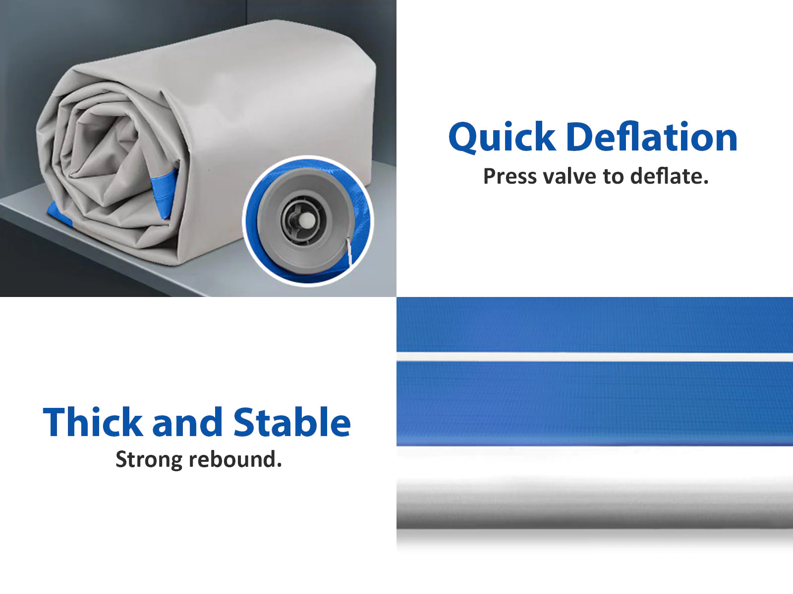 Softer on the body than foam, the 20cm thick air track is also bouncier than a spring floor and is highly versatile.