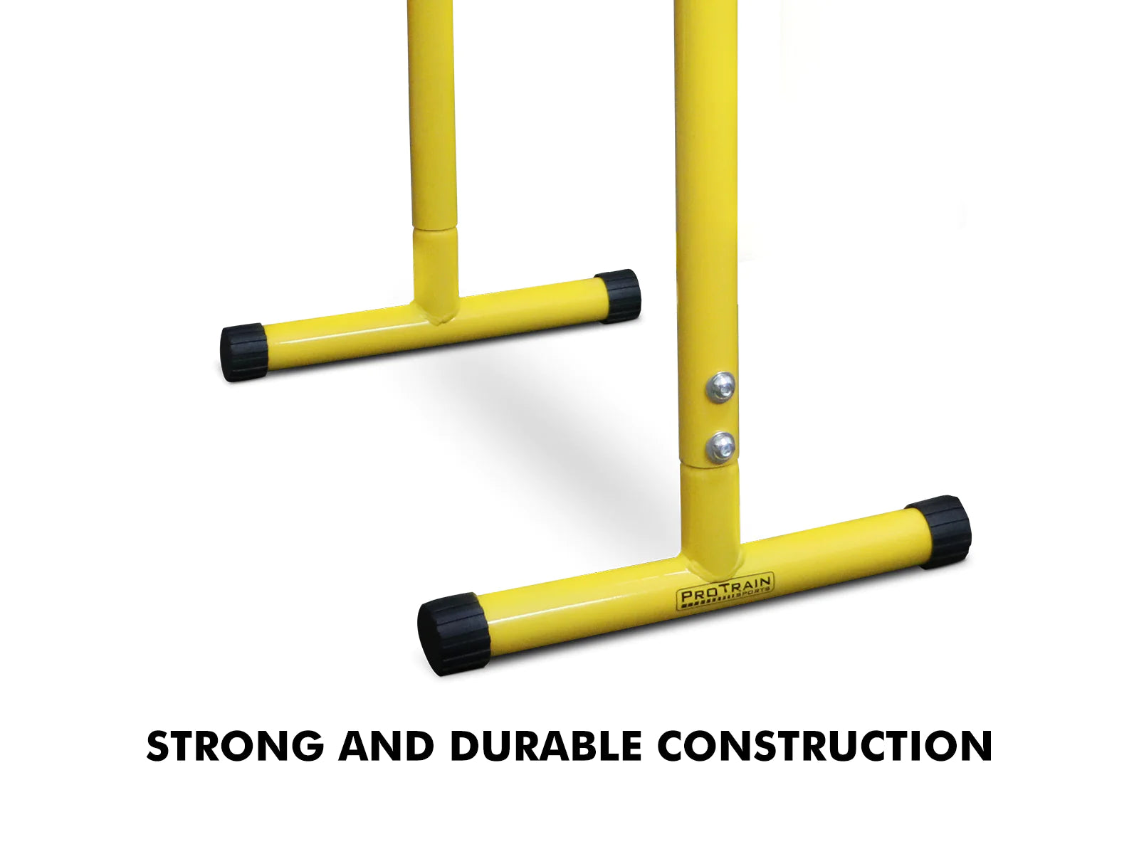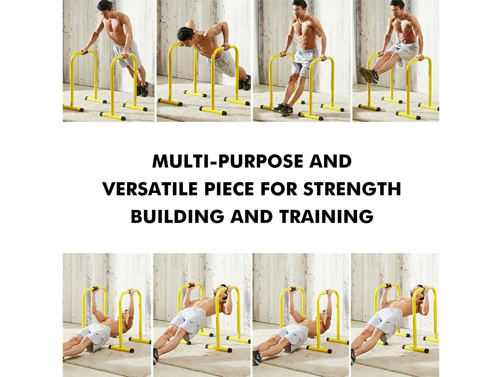 This parallel bars focus on core strengthening as well as full bodyweight dips, push-ups and leg raise among many other exercises.