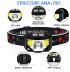Bright Rechargeable LED Headlight, Waterproof Motion Sensor Head Lamp, 8 Modes for Outdoor Camping Running Cycling Fishing