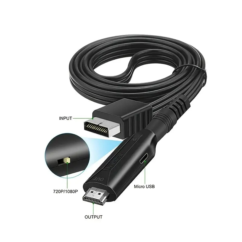 PS TO HD Cable,HD Cable For Playstation 2 & Playstation 1 Console (PS2 & PS1), PS1/PS2 To HD Adapter With RGB Signal Output, HD Converter With 4:3/16:9 Switch,100.58cm(black).